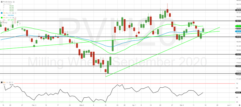 Sehen Sie hier die Chartanalyse für die Agrarprodukte an der MATiF und CBoT für die KW20.