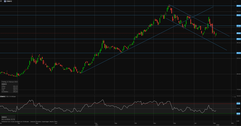 Chartanalyse KW08 - Euronext Weizen - Abwärtskanal verlassen