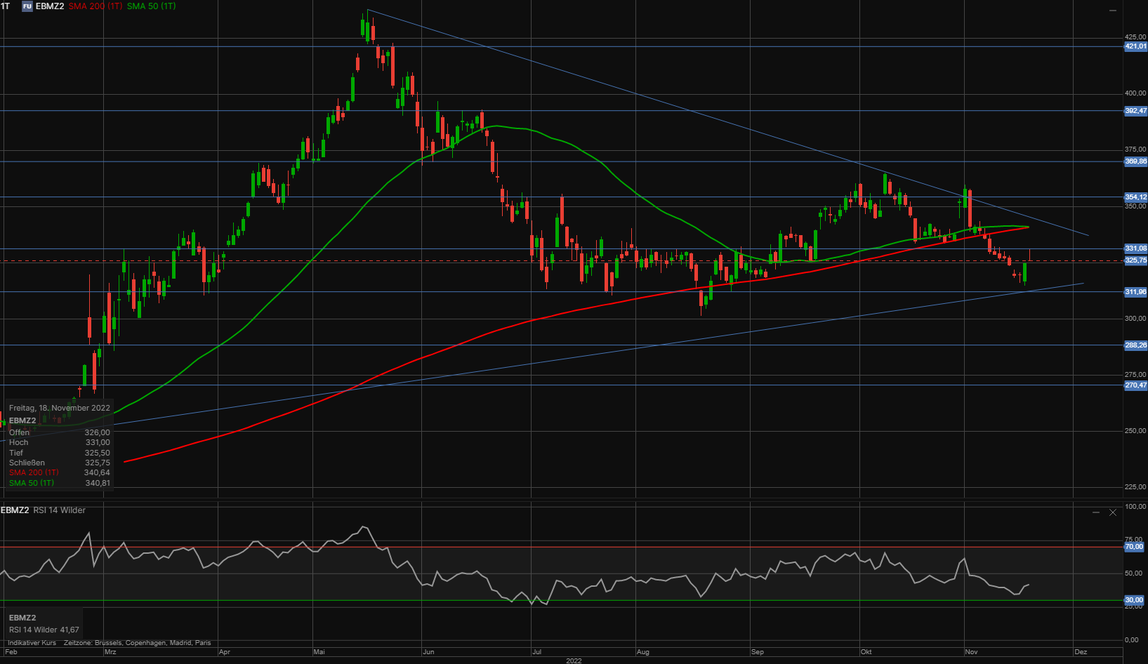 Chartanalyse KW45 - Euronext Weizen - kaum Momentum