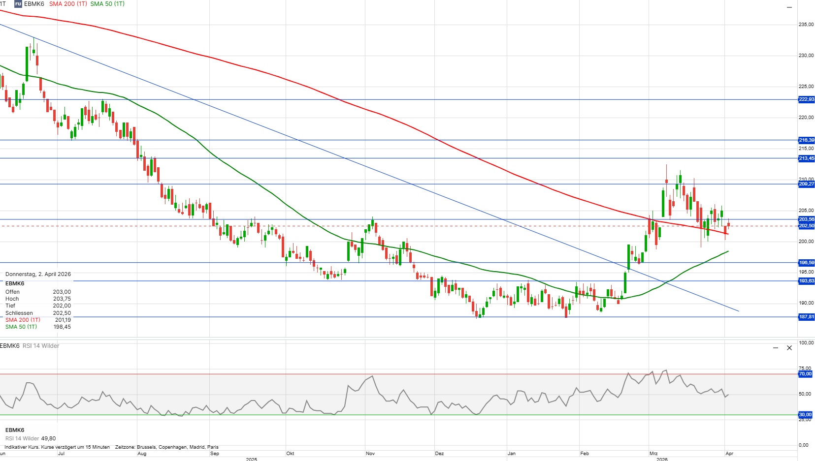 Chartanalyse KW11: Euronext Weizen - SMA200 durchbrochen