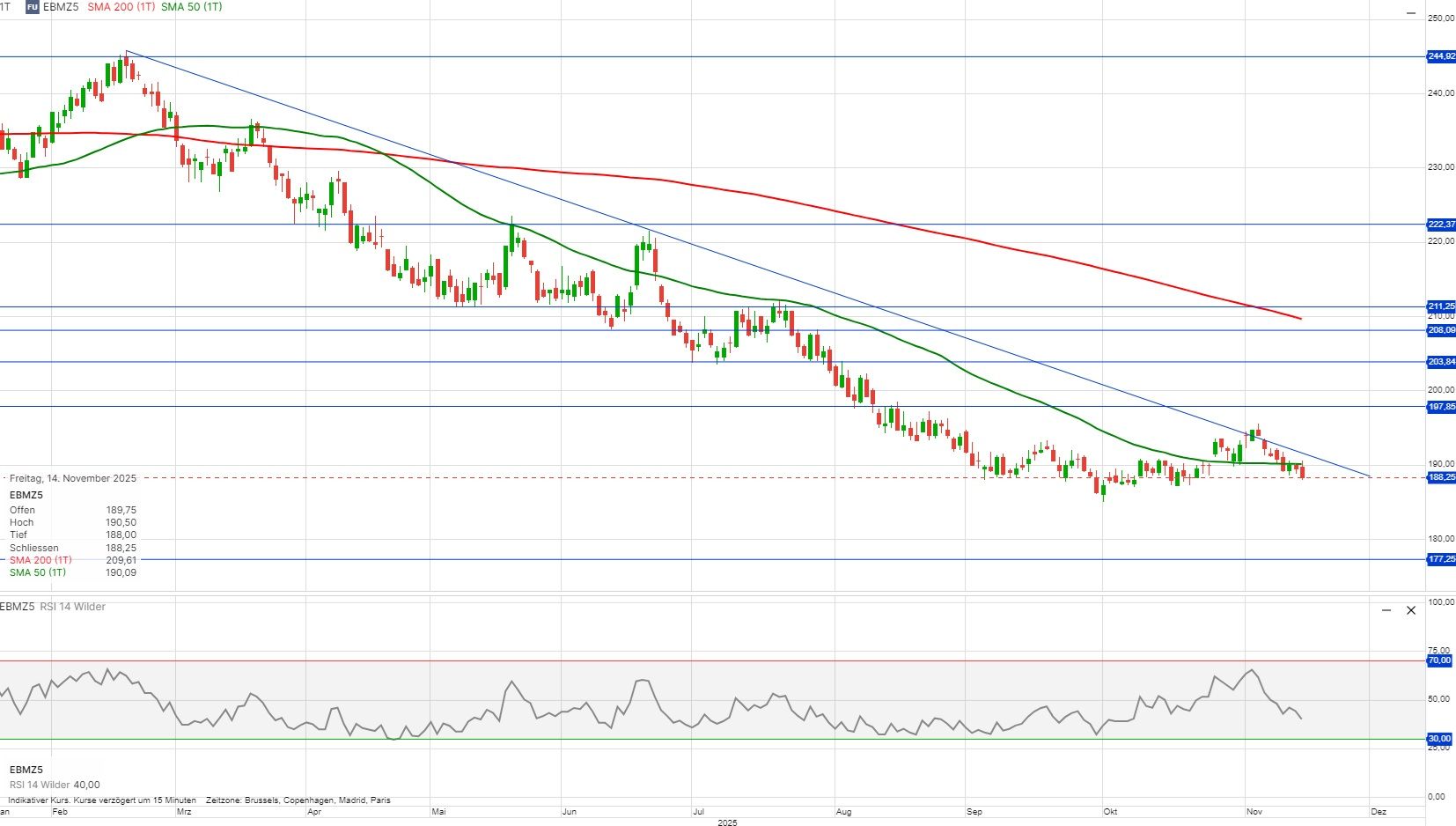 Chartanalyse KW47: Euronext Weizen - unter Abwärtslinie