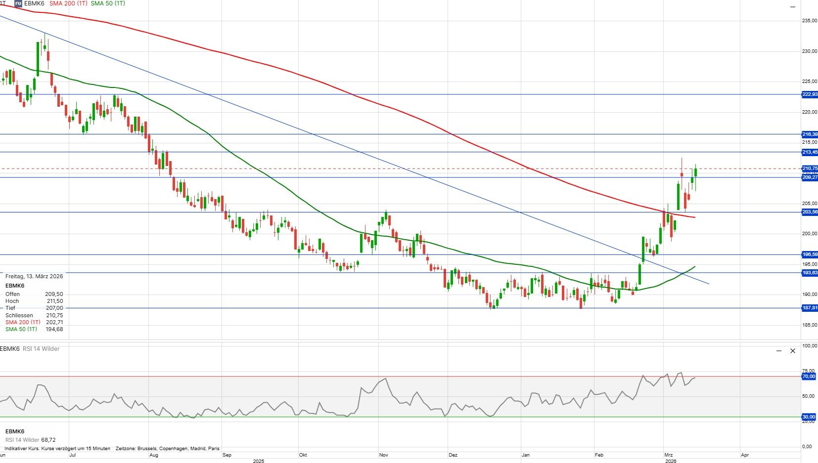 Chartanalyse KW11: Euronext Weizen - SMA200 durchbrochen