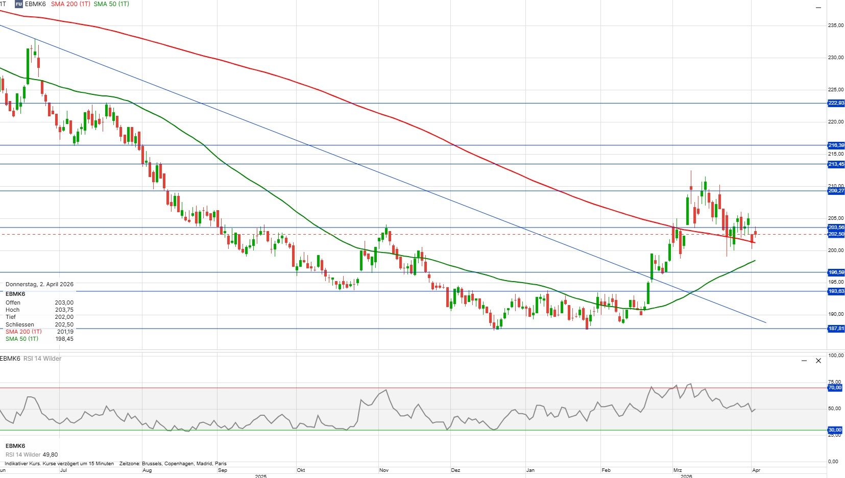 Chartanalyse KW11: Euronext Weizen - SMA200 durchbrochen