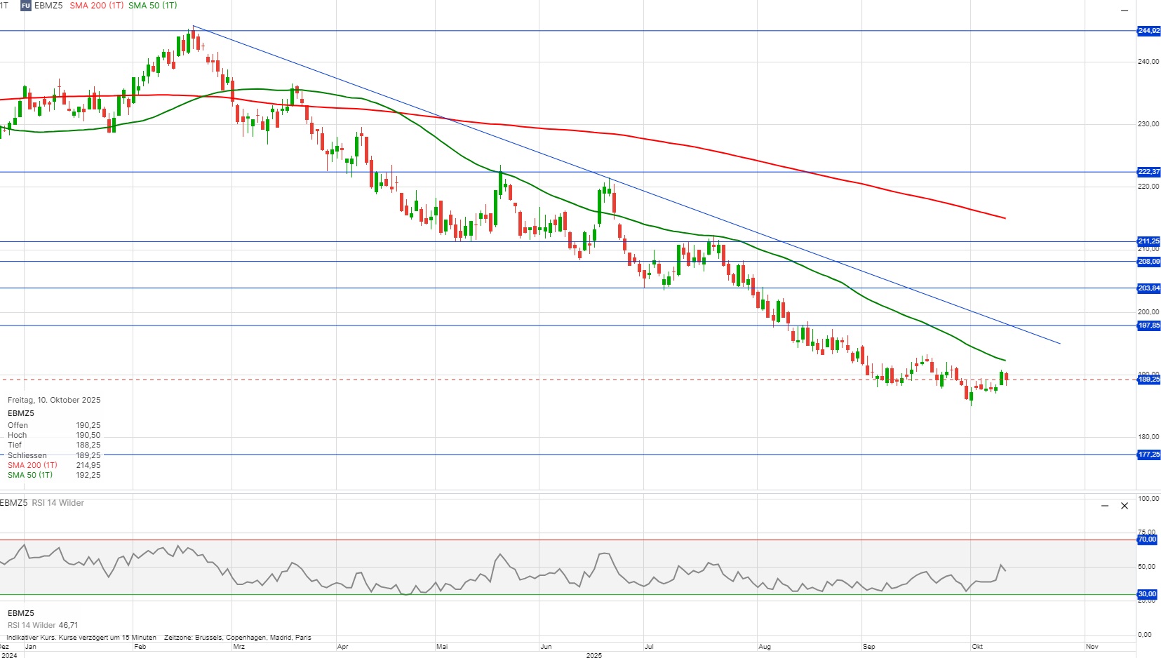 Chartanalyse KW41: Euronext Weizen - abermals neues Laufzeittief