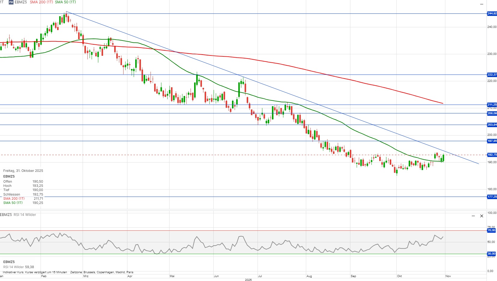 Chartanalyse KW43: Euronext Weizen - Ausgangslage unverändert