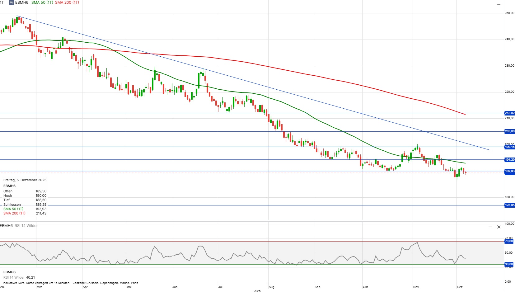 Chartanalyse KW47: Euronext Weizen - unter Abwärtslinie